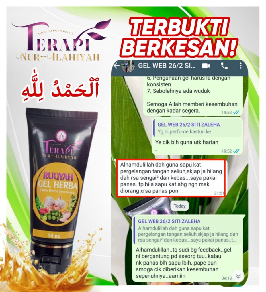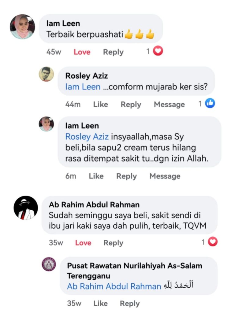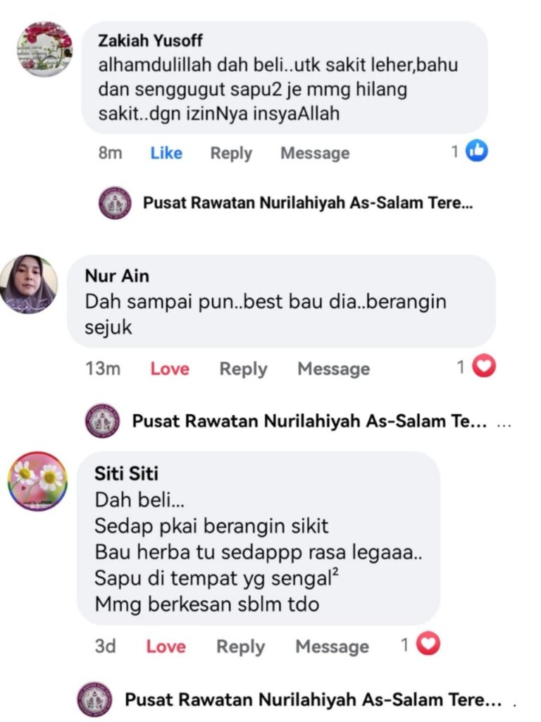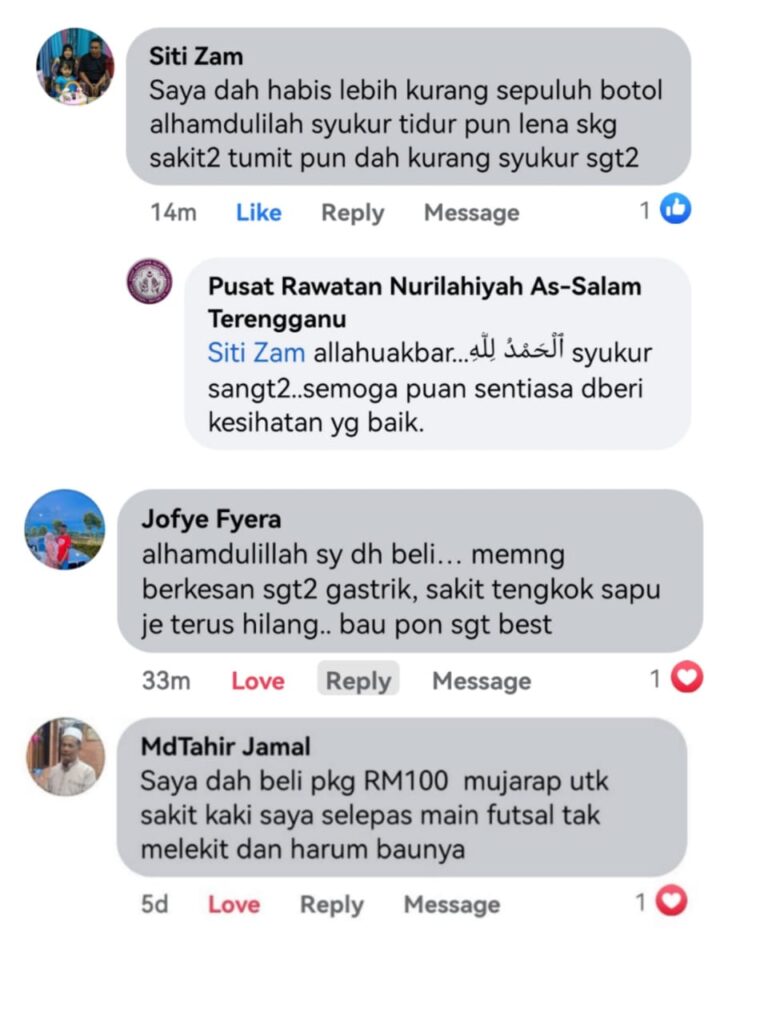 *PENAFIAN: Keberkesanan produk ini bergantung kepada kesesuaian individu. Setiap hasil dari penggunaan adalah berbeza bagi setiap individu. Produk ini akan memberi kesan terbaik sekiranya pengguna mengamalkan dengan cara betul berdasarkan banyak testimoni yang diperolehi. Kita berikhtiar, tuhan yang menyembuhkan.