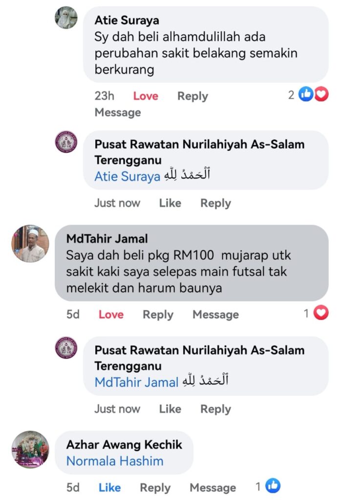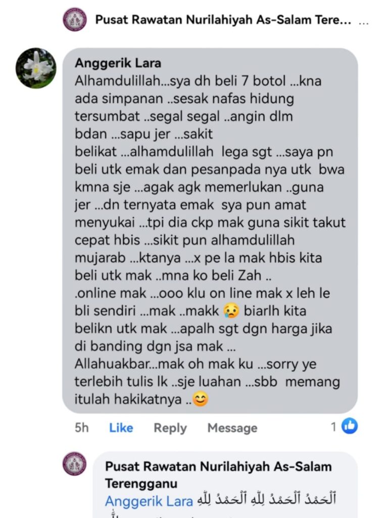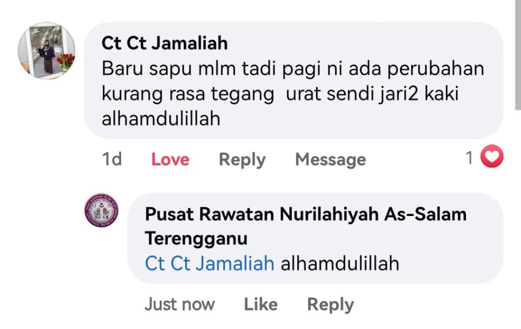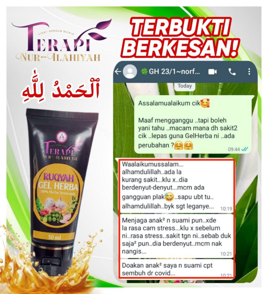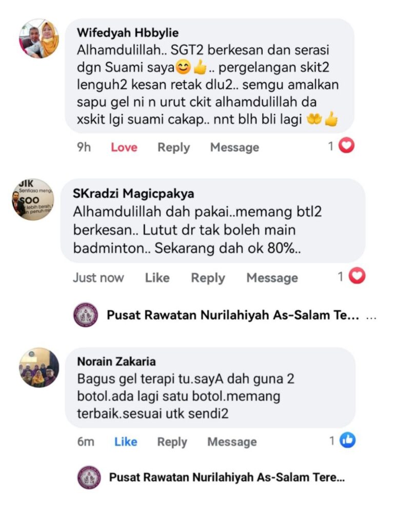 *PENAFIAN: Keberkesanan produk ini bergantung kepada kesesuaian individu. Setiap hasil dari penggunaan adalah berbeza bagi setiap individu. Produk ini akan memberi kesan terbaik sekiranya pengguna mengamalkan dengan cara betul berdasarkan banyak testimoni yang diperolehi. Kita berikhtiar, tuhan yang menyembuhkan.
